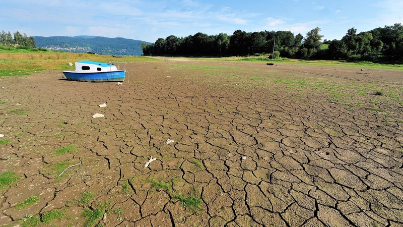 Zdjęcia zrobiono w połowie lipca. Obecne susze prawdopodobnie utrwaliły taki krajobraz. Dawne dno fragmentu Jeziora Żywieckiego wygląda na nich jak wielka wyschnięta kałuża.