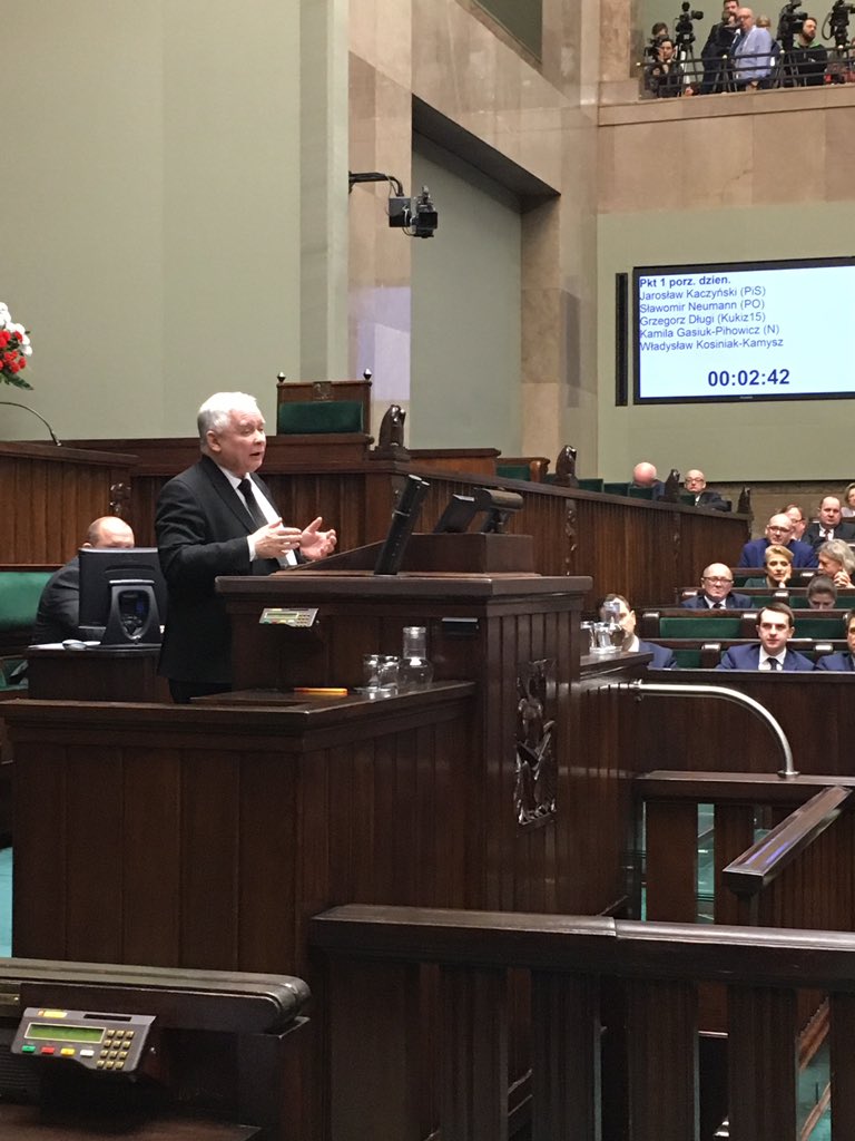 Prezes PiS Jarosław Kaczyński stwierdził, że szef PO Grzegorz Schetyna w wystąpieniu znakomicie scharakteryzował osiem lat rządów Platformy w Sejmie. Szef PiS uważa, że PO reprezentuje „fałszywą świadomość".