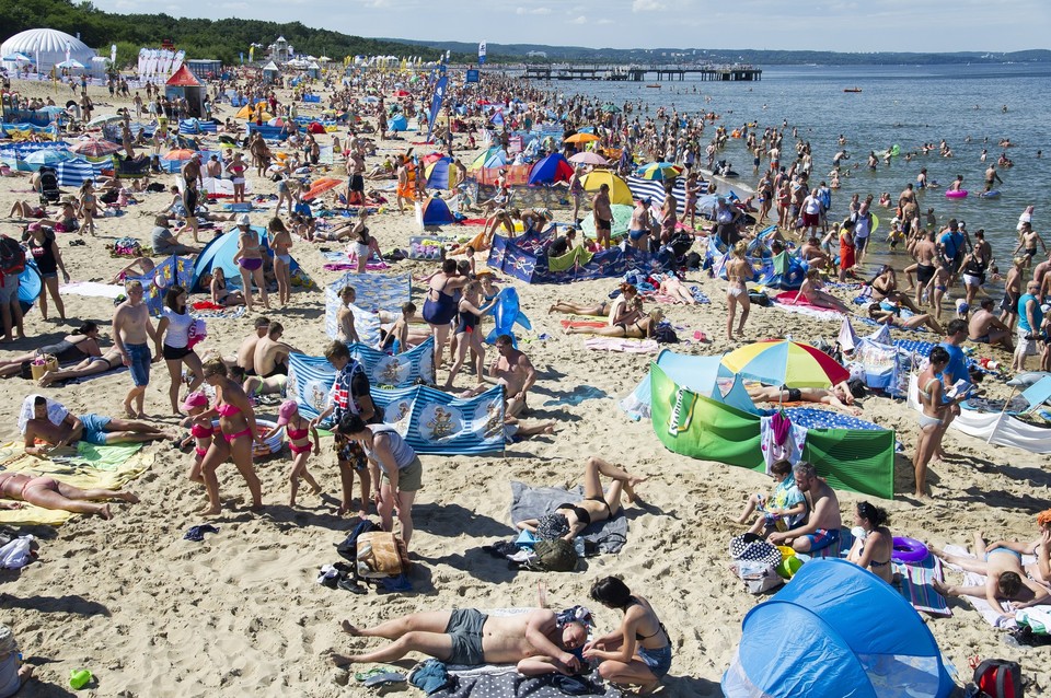 Za nami półmetek wakacji. W końcu doczekaliśmy się upalnej pogody. Dziś słupki rtęci w wielu regionach kraju osiągną nawet 37 stopni Celsjusza. Instytut Meteorologii i Gospodarki Wodnej wydał ostrzeżenia trzeciego stopnia dla czterech województw: śląskiego, małopolskiego, świętokrzyskiego i podkarpackiego. Gorąca aura sprzyja wyjazdom poza miasto, dlatego polskie plaże dosłownie "pękają w szwach". Z powodu wysokich temperatur, w wielu miejscowościach ustawione również zostały kurtyny wodne. Zobaczcie, jak wypoczywają urlopowicze w różnych zakątkach naszego kraju.