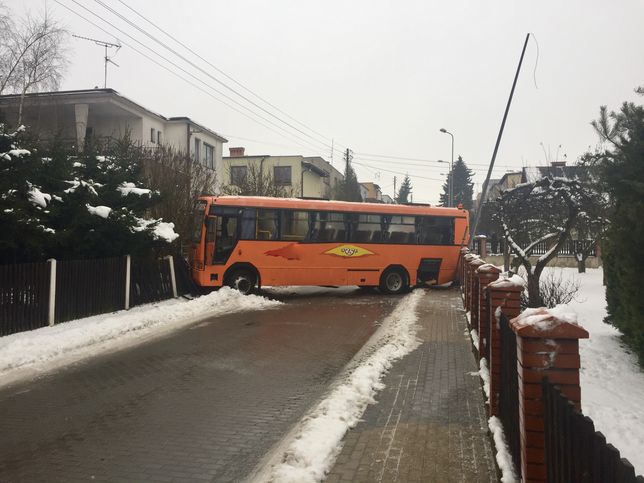Wiozący 27 dzieci autobus szkolny staranował dwie posesje w Chojnicach. Kierowcy nie udało zapanować się nad pojazdem, którym jechał po stromej i śliskiej drodze. - Obiecali, że będą sypać. Jakbym przewidział, tobym nie zjeżdżał wcale - tłumaczył mężczyzna po wypadku. Jedno dziecko trafiło do szpitala.Ze wstępnych ustaleń policji wynika, że kierowca jechał zbyt szybko. - Wpadł w poślizg, po czym uderzył w ogrodzenie, co skutkowało tym, że pojazd stanął w poprzek drogi. Zakleszczył się pomiędzy dwoma ogrodzeniami, uszkadzając przy tym latarnię - powiedziała w rozmowie z weekendfm.pl st. sierż. Justyna Przytarska, oficer prasowa Komendy Powiatowej Policji w Chojnicach. Do sytuacji doszło w środę o godz. 8:30 rano.Spośród 27 dzieci, które podróżowały autobusem, jedno zaczęło skarżyć się na ból głowy. Chłopiec został przewieziony do szpitala. Kierowca autobusu był trzeźwy. Jego zdaniem to trudna sytuacja na drodze doprowadziła do wypadku. - Było bardzo ślisko, jechaliśmy bardzo wolno, na dwójeczce i po prostu nie było sypane. Tą górą się zawsze wyjeżdżało, ale tam jest w remoncie droga, tamtędy nie idzie zjeżdżać - stwierdził.