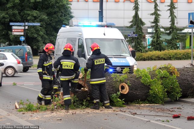 W Warszawie konar przygniótł mężczyznę, który szedł z małym dzieckiem Na szczęście, udało mu się je odepchnąć, gdy zauważył lecącą na nich gałąź. Mężczyzna stracił przytomność, silnie krwawił. Przewieziono go do szpitala.