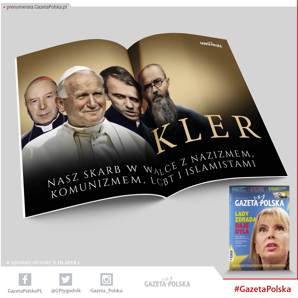 Okładka poprzedniego numeru tygodnika Gazeta Polska była przeróbką plakatu filmu „Kler”. Zamiast przebierańców na czele ze znanym z wypowiedzi kipiących nienawiścią do PiS Januszem Gajosem, na plakacie pokazani są prawdziwi duchowni – Jan Paweł II, Prymas Stefan Wyszyński, ksiądz Jerzy Popiełuszko i Maksymilian Kolbe. Wczoraj sejm zdecydował o ustanowieniu 19 października Narodowym Dniem Pamięci Duchownych Niezłomnych. W środowiskach feministycznych zawrzało. Profesor Magdalena Środa nie wytrzymała. W swoim wpisie na Facebooku zaatakowała nie tylko inicjatywę upamiętniania Kapłanów Niezłomnych, lecz ostro skrytykowała nawet posłów Platformy Obywatelskiej.Gdy Europa upada niszczona przez polityczną poprawność i gender z jednej, a islamskie hordy z drugiej strony, powstał plan wywołania buntu Polaków przeciwko księżom. Taki plan mógł rodzić się tylko w głowach wrogów Polski, podobnie jak wszystkie poprzednie próby zniszczenia polskiego Kościoła instytucjonalnego. A zaakceptowany może zostać przez skończonych idiotów podcinających gałąź, na której siedzą” – pisze w najnowszym numerze tygodnika Gazeta Polska Piotr Lisiewicz.Wczoraj sejm przyjął projekt ustawy mówiący o upamiętnieniu Duchownych Niezłomnych. Za przyjęciem ustawy - której projekt zgłosiło PiS - głosowało 356 posłów, przeciw było 39, a 21 posłów wstrzymało się od głosu. Wcześniej Sejm przyjął cztery poprawki, autorstwa PSL-UED, polegające na zastąpieniu w tytule i treści ustawy wyrazów "Kapłanów Niezłomnych" - jak było w projekcie - słowami "Duchownych Niezłomnych".Według projektodawców ustawy, ustanowienie 19 października Narodowym Dniem Pamięci Duchownych Niezłomnych "jest wyrazem hołdu" dla duchownych, którzy swoją postawą "dawali wyraz wierze w Jezusa Chrystusa, ale też męstwu i niezłomnej postawie patriotycznej".Tego dla Magdaleny Środy było już najwyraźniej za dużo. W emocjonalnym wpisie na Facebooku zwyzywała Platformę, nazywając ugrupowanie kierowane przez Grzegorza Schetynę „idiotyczną partią”.