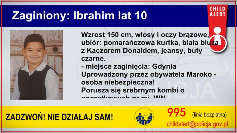 Dziecko zostało porwane w Gdyni, przy ul. Ledóchowskiego. Teraz policja publikuje wizerunek mężczyzny, podejrzanego o porwanie Ibrahima. To Azeddine Oudriss. - Wszystkie informacje dot. zaginionego lub osoby podejrzewanej o uprowadzenie prosimy przekazywać pod numer 995, 112, 997 lub do najbliższej jednostki policji - apelują funkcjonariusze. Sprawę przejęła już komenda główna policji. Funkcjonariusze ostrzegają, że mężczyzna może być niebezpieczny. Sąd w Belgii pozbawił go praw rodzicielskich.